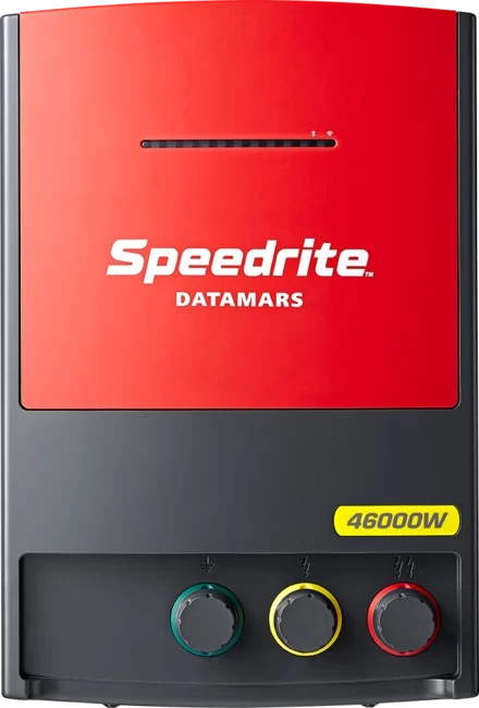 Speedrite 46000W Fence Energizer 46J Output, 68J Stored | up to 290* miles, 3300* acres Bluetooth and Wi-Fi Enabled! Monitor and control the energizer from your phone with the Datamars Livestock: Farm App | Includes Remote Control / Fault Finder *Replaces 36000RS*