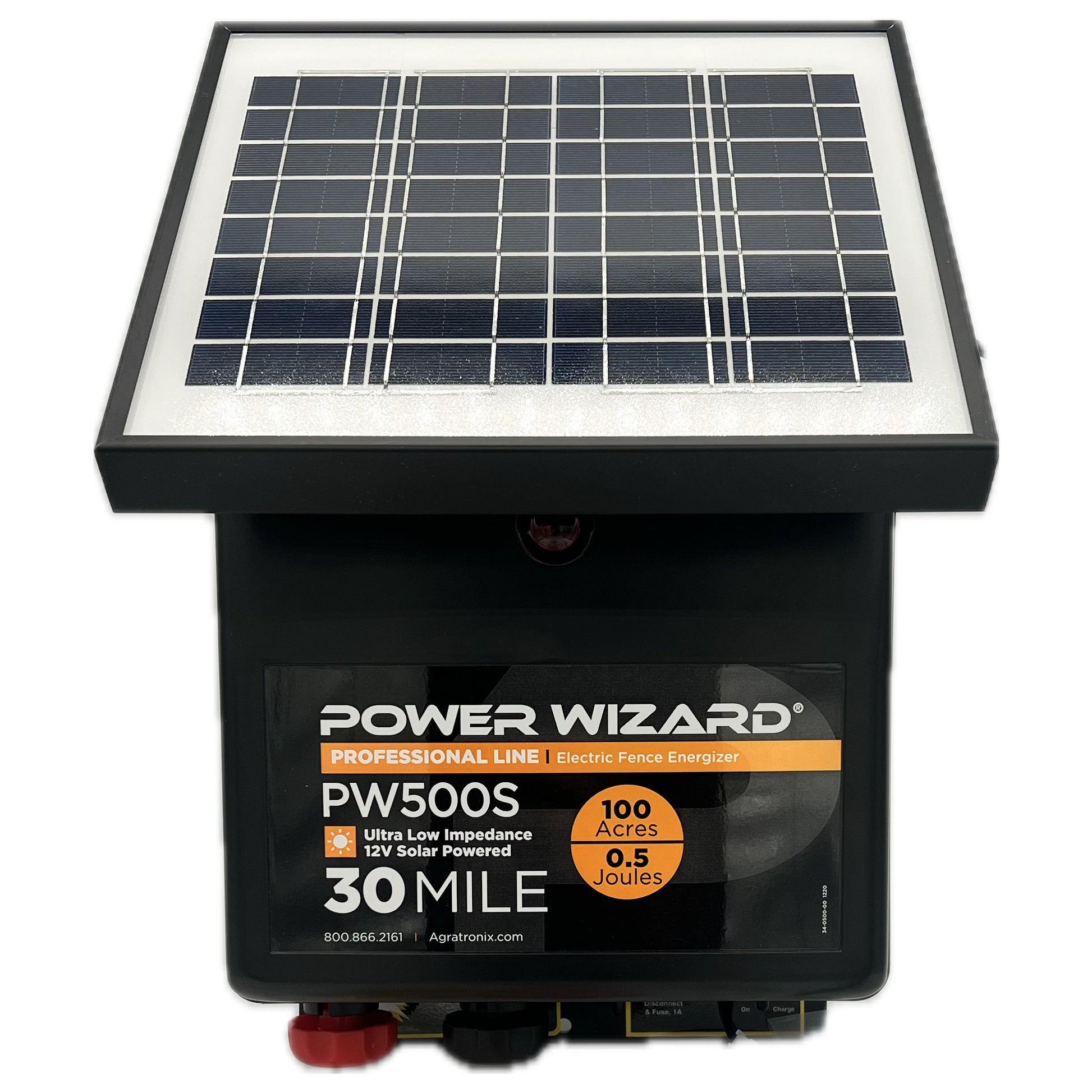 The Power Wizard 500 Solar is a low impedance power fence charger and has an output of 0.5 joules. This charger can cover 100 Acres or 30 Standard Miles of wire. This charger is designed for horses, cattle, pigs, sheep, llamas, and elk. Whiles it's main purpose is to keep animals in it also helps to keep predators out!